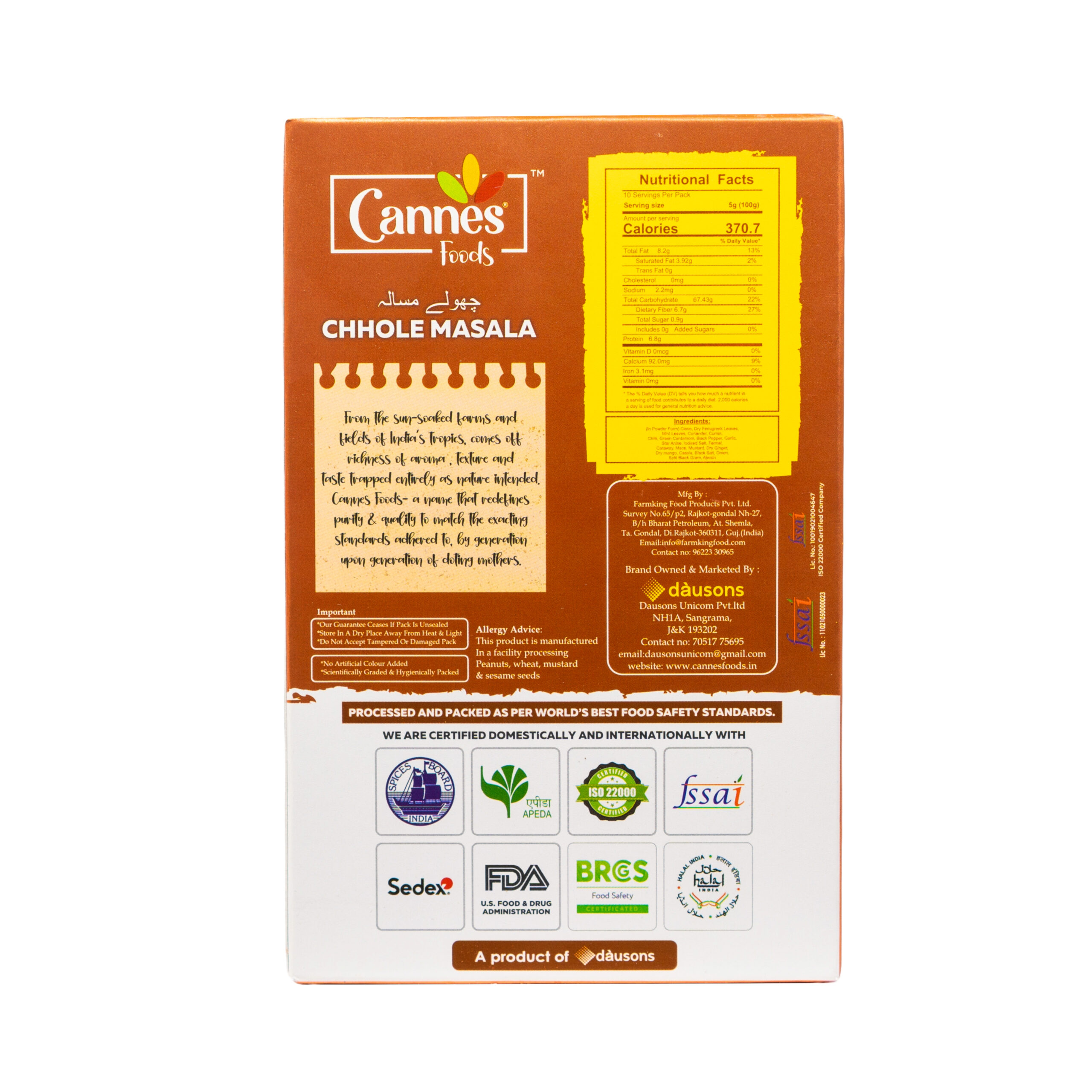 Experience the authentic taste of Punjab with Cannes Foods Chole Masala, a perfect blend for a delicious and traditional chickpea curry.