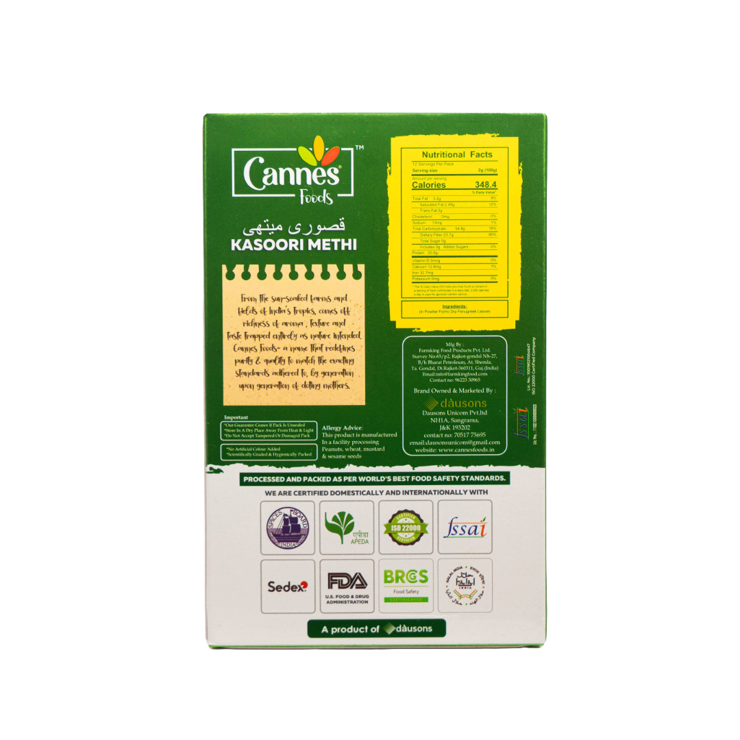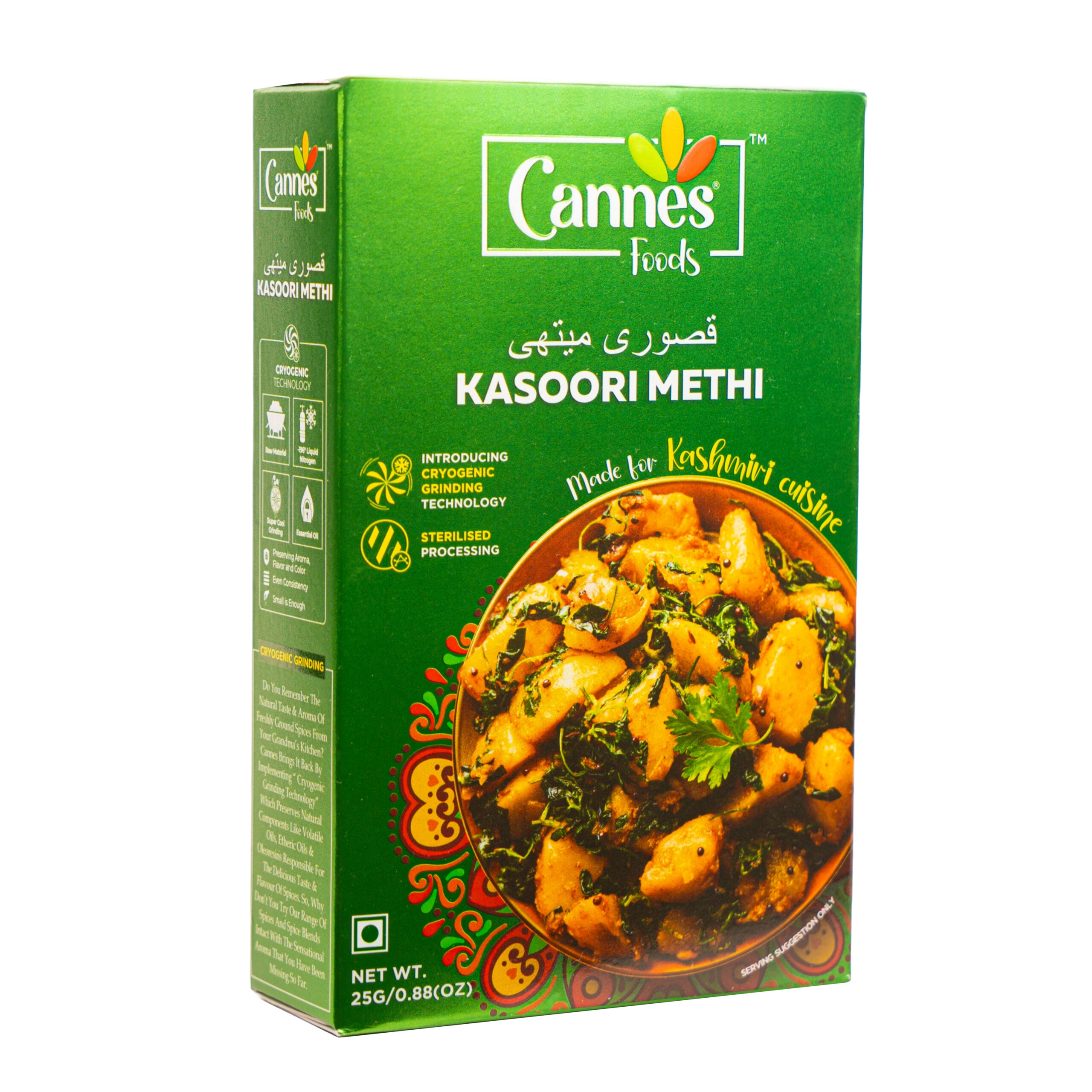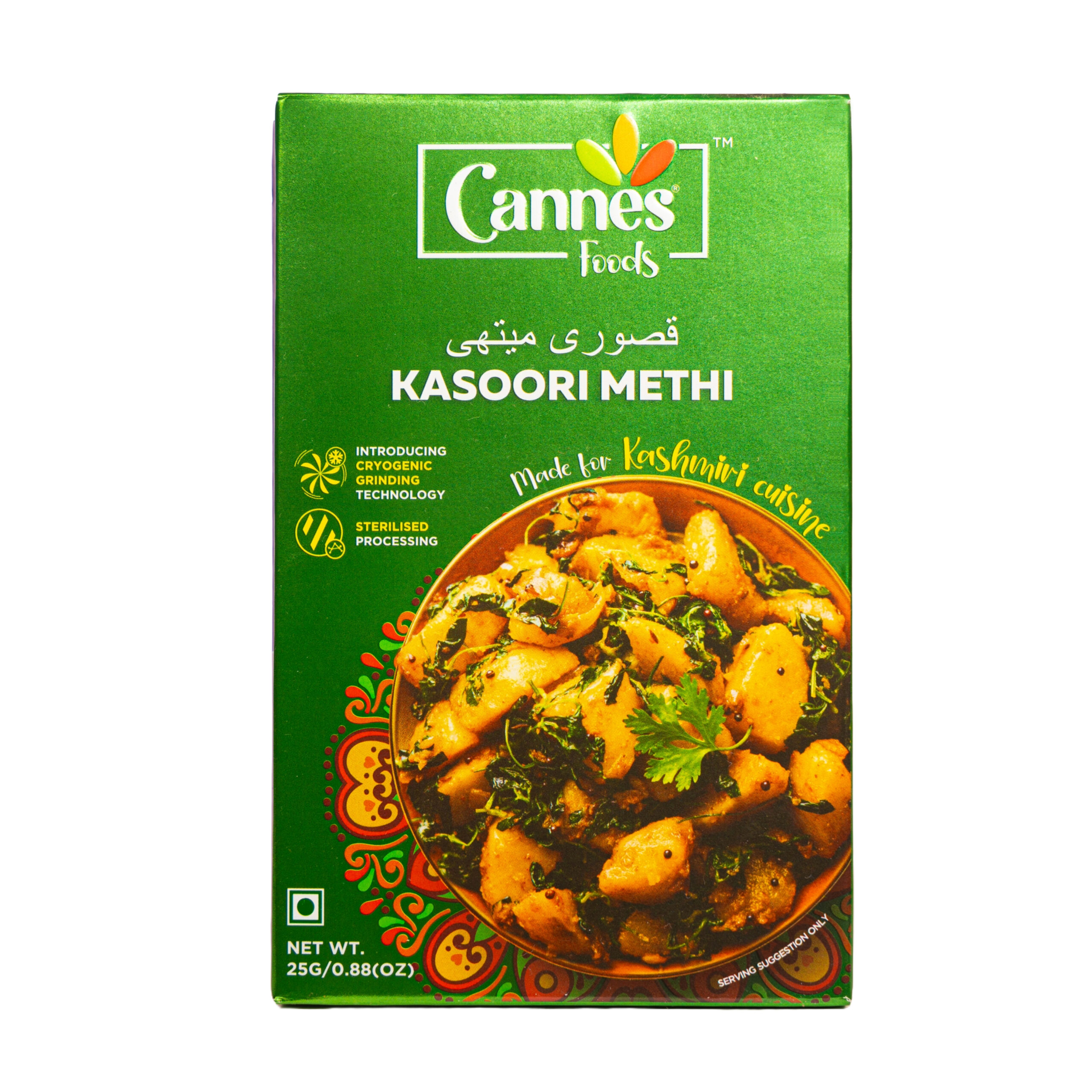 Experience authentic Indian flavor with Cannes Foods Kasuri Methi, made from carefully selected fenugreek leaves for superior quality & taste.